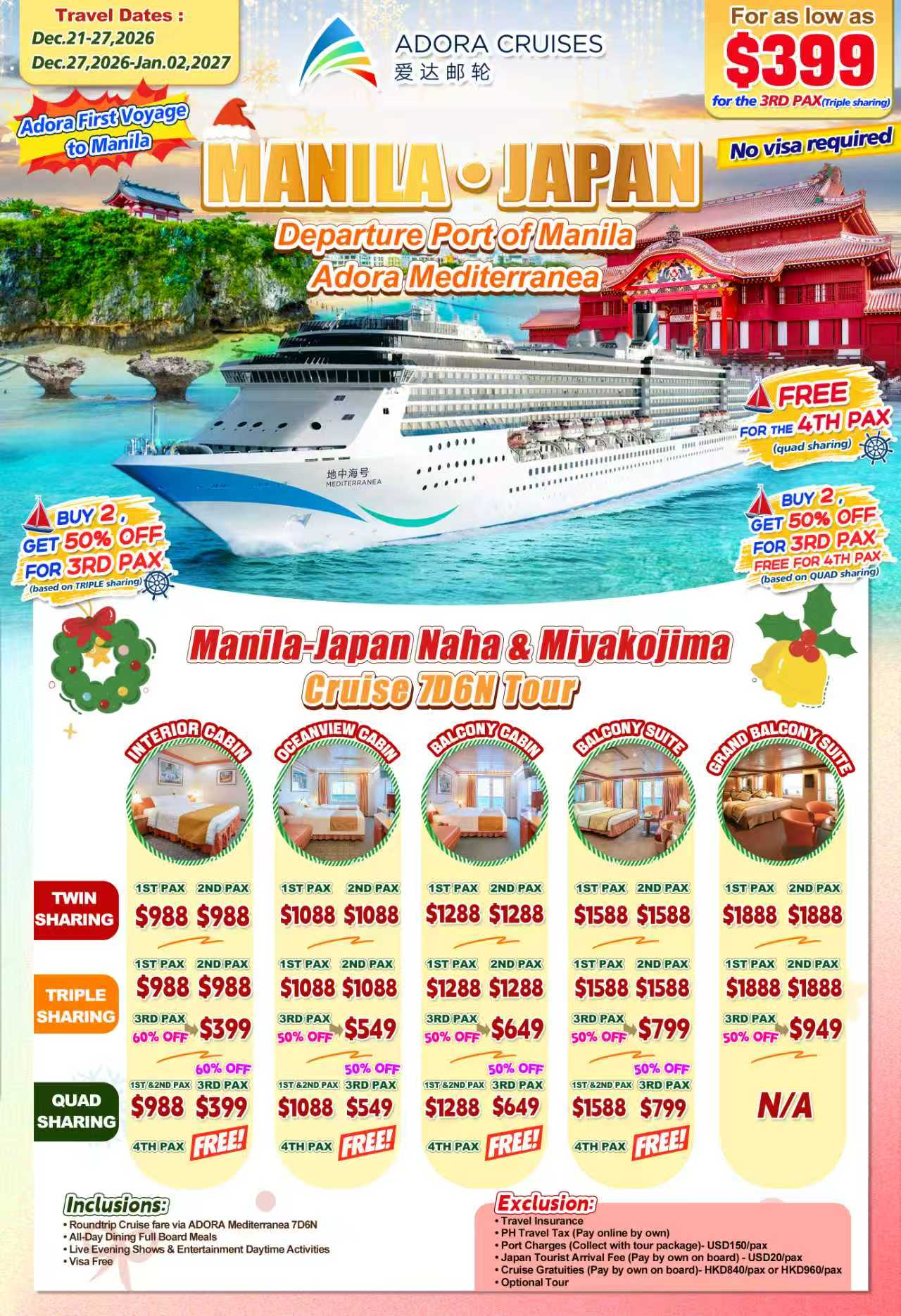 MNL-Japan Adora Mediterranea Cruise 7D6N, Dec, 2026