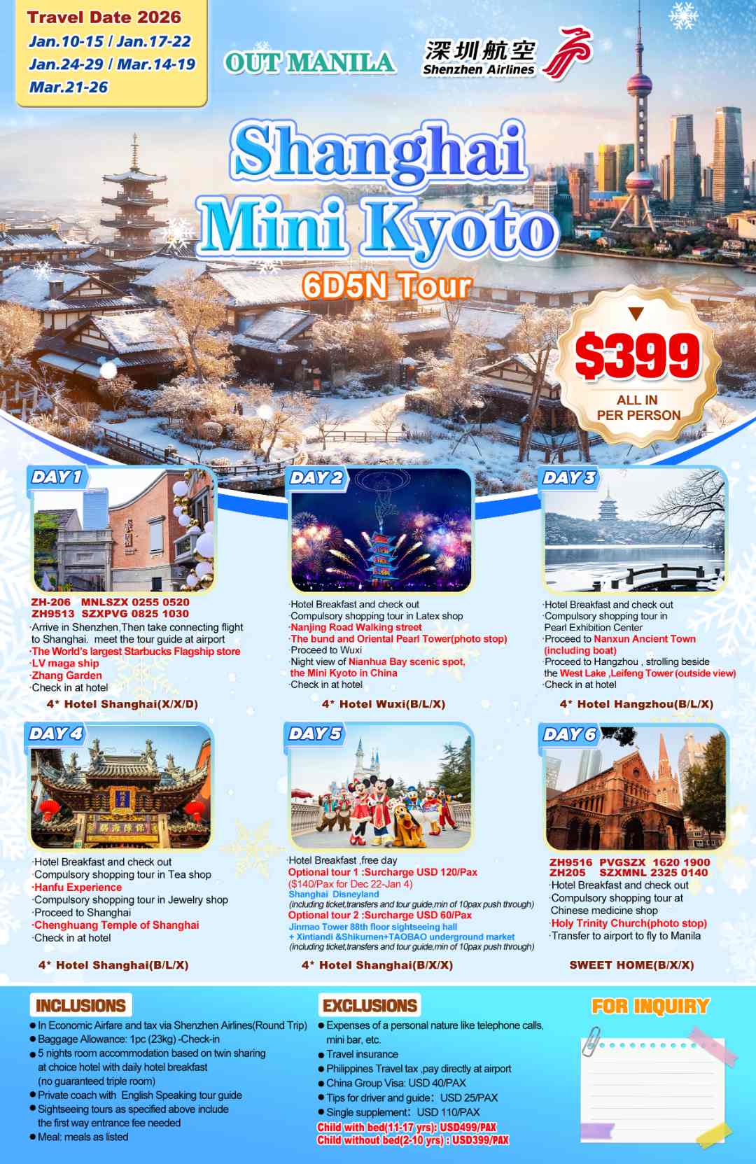 Shanghai Mini Kyoto(via Shenzhen) 6D5N ,2026