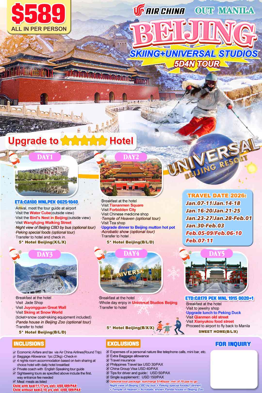 Beijing+Skiing+Universal Studios 5D4N,2026