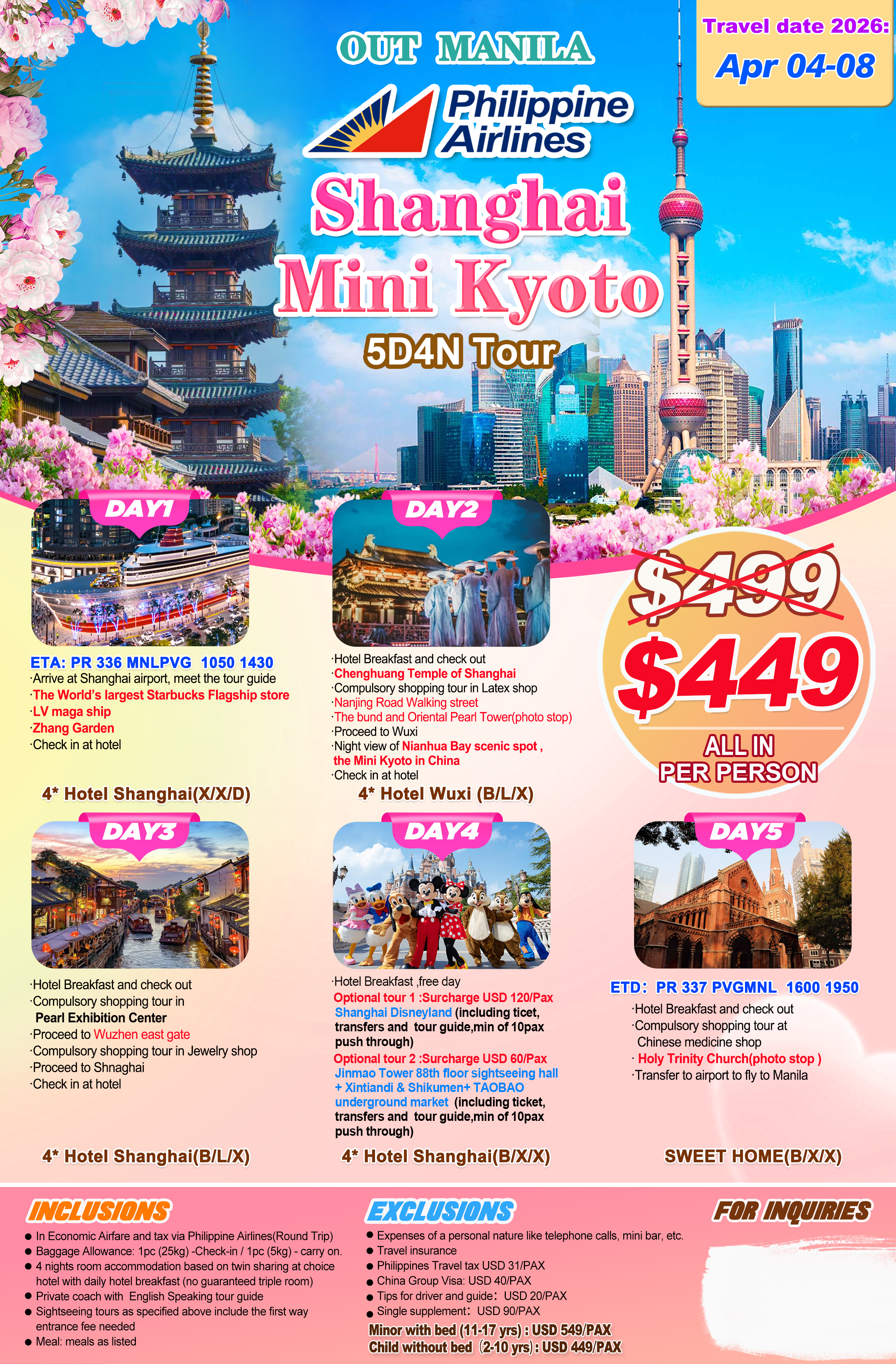 MNL | $ 449 | $ 200 | Philippine Airlines | 0 | china.allin@uostravel.com |