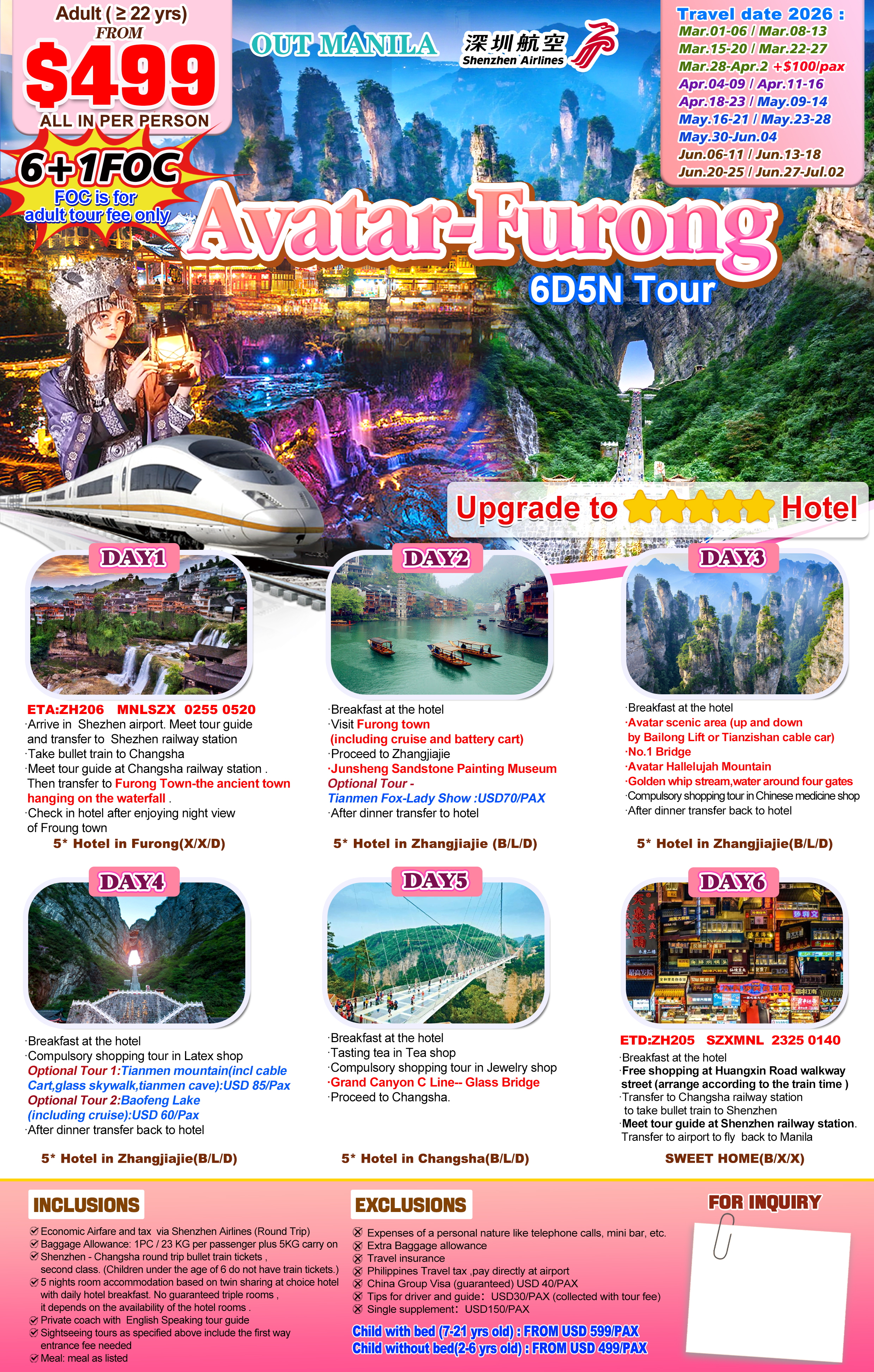Avatar+Furong(via Shenzhen)6D5N ,2026 UOS-PH-AF-ZH-20260523-11